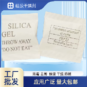 包装用硅胶干燥剂有多种包装规格,可方便地置于各类物品(如仪器仪表电子产品、皮革、鞋、服装、食品、和家用电器等)包装内,以防止物品受潮霉变或锈蚀。 型号: 细孔型 B型