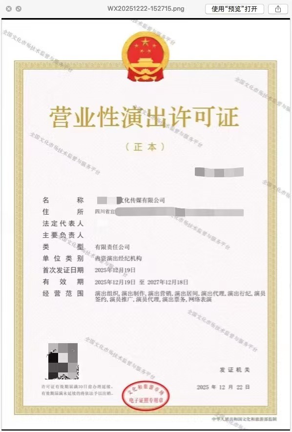 四川营业性演出许可证专业申办指导经纪机构设立;