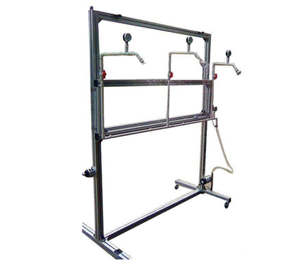 UL喷淋试验装置管道夹角,尺寸,喷嘴符合UL1278标准图49.1,图49.2及条款49要求;水压由供水机通过触摸屏控制;喷嘴符合UL1741、UL1278、UL1598灯具标准及相关条款要求。