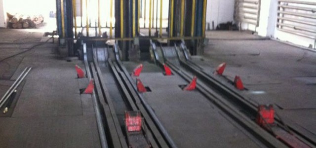 井口液压摇台摇尖搭接在罐笼边缘的导轨衬