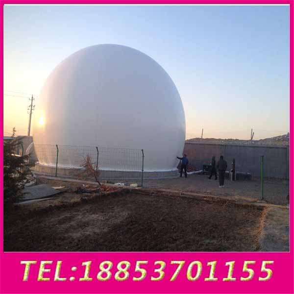 双膜气柜的内膜与底膜之间形成一个容量可变的气密空间用作储存沼气,双膜气柜的外膜构成储存柜的球状外型,作为保护内膜和形成挤压内膜的压力空间,具有防紫外线和保护内膜的作用的同时具有自洁功能。