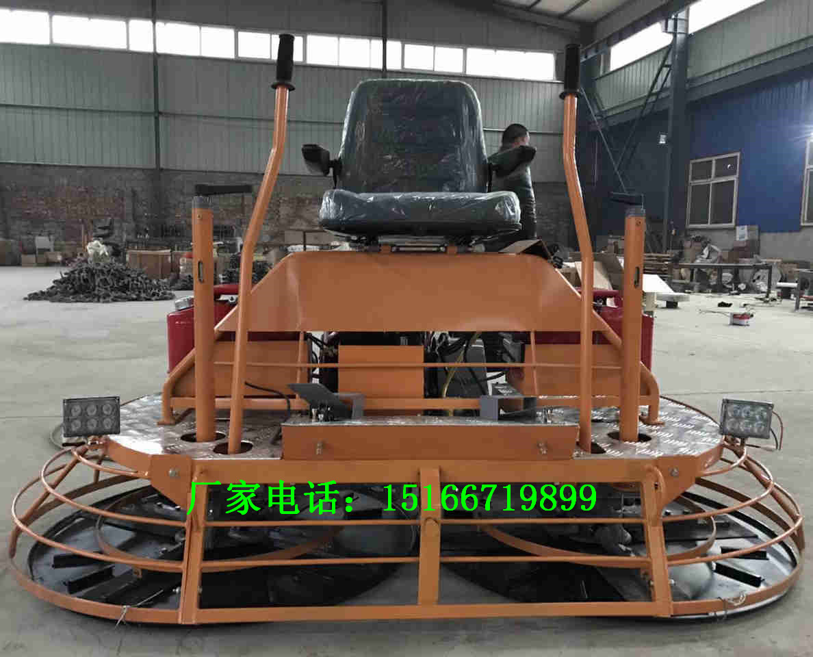 金尊厂家生产的座驾式抹光机是目前国内较先进的高效抹光机,一台座驾式抹光机效率等于12-15台手扶式抹光机,省时省力,已经获得欧洲CE认证和美国EPA认证,可以出口世界任何一个国家,本产品外观性能居国内 水平,被多城市市政施工单位指定型号。 获得了国内外客户的一致好评,我厂一直坚持做高质低价的产品,让每一个消费层次的客户都能享受上乘产品的施工效率。