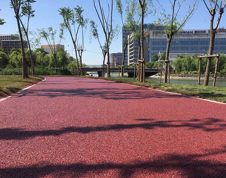 睿龙透水路面材料是由骨料、高标号水泥、渗合料、矿物掺料、彩色强化剂、标石、彩石、纤维、增强剂、着色剂和乳液等拌制而成的一种多孔轻质混凝土,成孔穴均匀分布的蜂窝状结构,具有透气性、透水和重量轻的特点,作为环境负荷减少型混凝土,透水路面的研究开发越来越受到重视。