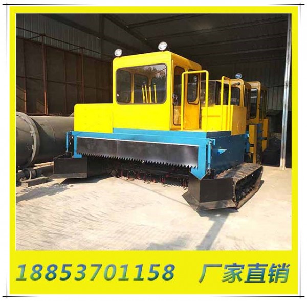3.履带式翻抛机属大型翻抛机的一种,可液压操作系统,拉杆式方向盘操作,履带行走,结实耐用,动力强劲,技术先进,产量大、翻抛能力强,翻抛滚筒液压升降调节,自动化程度高,操作简单易掌握。是有机物料耗氧发酵转化成有机肥的专业翻抛设备。