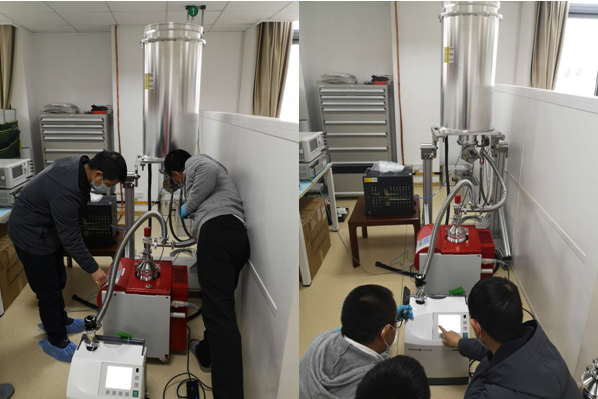 某天文台采有真空模式, 即通过分子泵组 Hicube 700作为辅助泵, 先对杜瓦组件进行抽真空. 当真空度达到待检值时, 在杜瓦周围可能漏的位置喷撒一定量的氦气, 启动检漏仪 ASM 310检漏仪对杜瓦组件检漏. 漏率值设定为1.10-8Pa.m3/s. 若有检测到实际漏率小于设定值, 则会报警提醒, 从而来判断杜瓦组件是否符合使用要求.