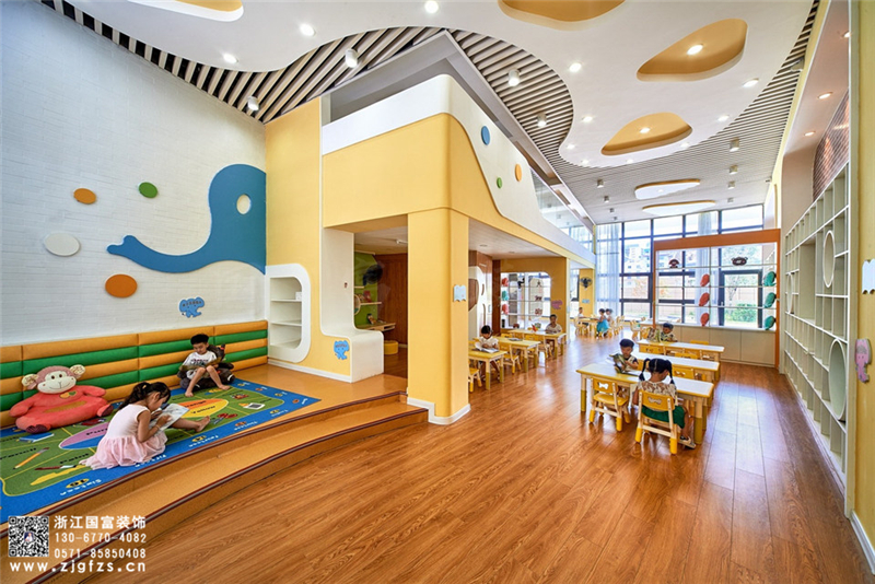 其中体现的最明显的一点就是现如今的家长对于子女的教育也越来越重视,相比与以前,现在的家长会花更多的精力去培养孩子兴趣爱好,也更愿意在孩子身上花费更多的时间和金钱。针对这一现象,现在有很多的幼儿早教如雨后春笋般的冒出,围绕幼儿的早教亲子中心也越来越多。众所周知,各行各业都是有竞争的,现在幼儿早教越来越多,面临的市场竞争也越来越激烈,而要想吸引住家长们的眼光,一个良好的环境体验是成功吸引家长关注品牌的窗口。因此在进行幼儿早教中心的装修设计过程中,应当融入品牌与功能的概念,宣传公司的文化精神,从而吸引家长们的目光。下面,浙江国富装饰就围绕幼儿早教中心装修设计,来谈一谈幼儿早教在进行装修设计的时应当具备的十点要求。