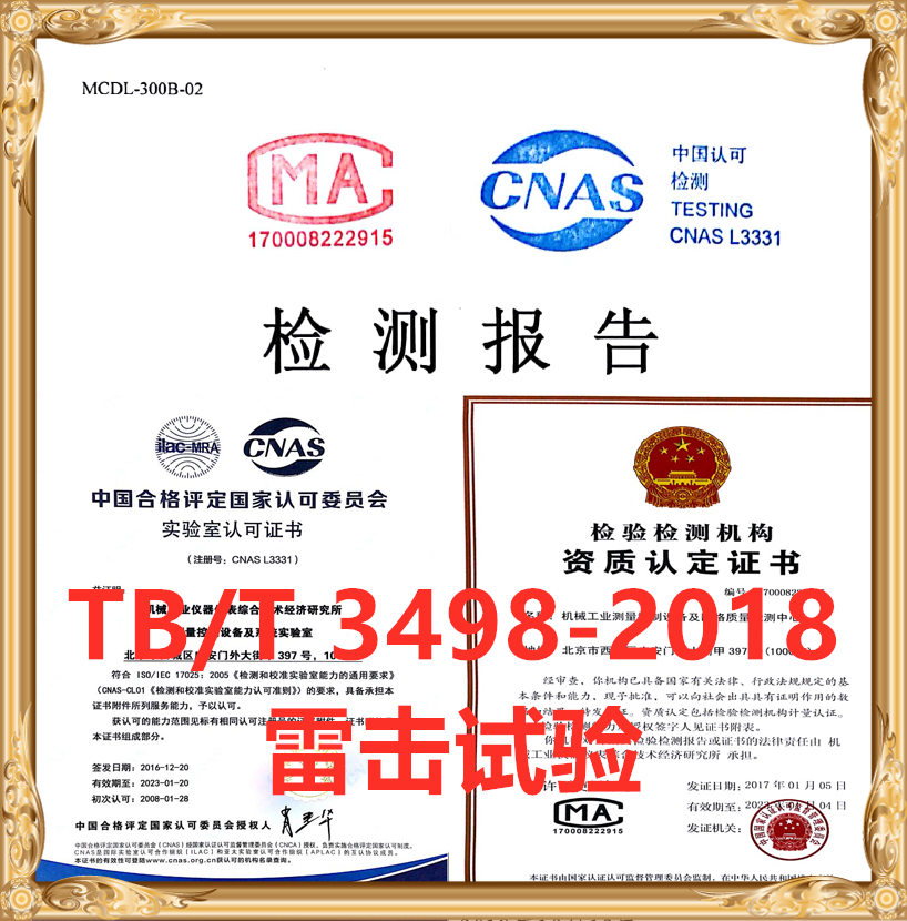 铁路通信信号设备雷击试验方法 TB/T 3498-2018型式试验实验室,是国家认可的第三方检测机构,作为CNAS认可, CQC、德国TUV委托实验室,可出具权威、准确的检测报告(CNAS和CMA认证);完整记录试验全过程数据,包括试验剖面,振动功率谱,温度变化曲线等;
