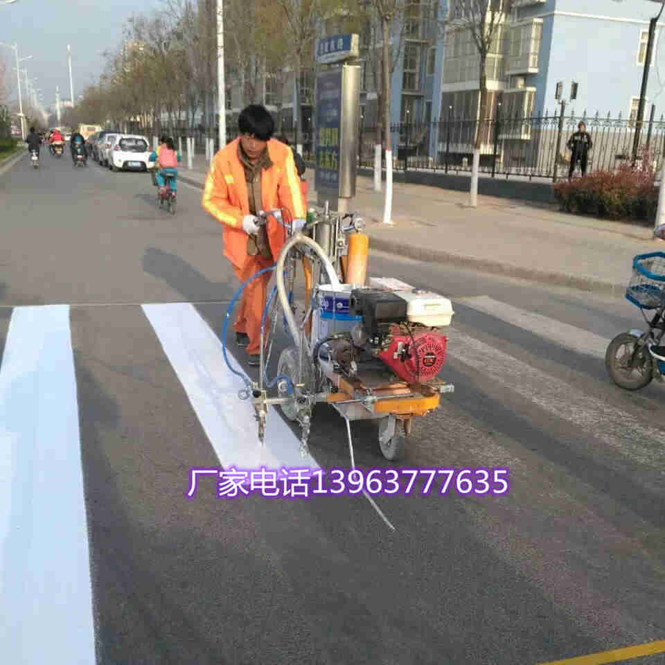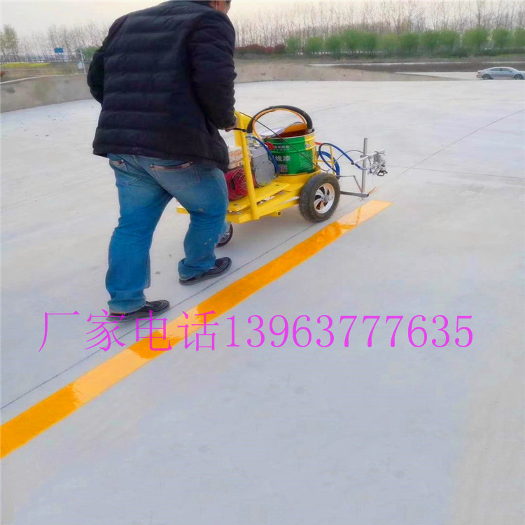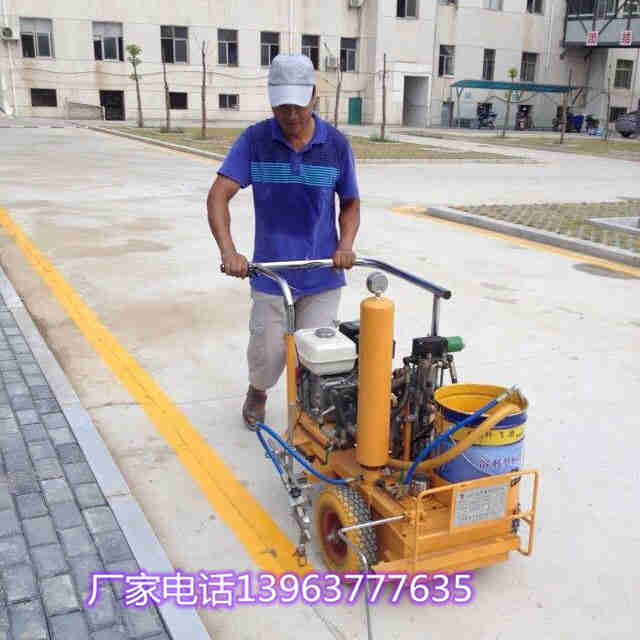 划线机前轮定向器:可锁定前轮定向装置,确保划线机沿直线定向或弯道转向自如。划线机导向杆:上、下、左、右可自由调整。 划线机涂料泵:双配新型液压驱动柱塞式高压无气泵机,运行可靠,适用常温标线涂料。该泵流量大、压力稳。压力为20mpa(工作压力为10-15mpa),单泵流量9L/min。标线,双实线、斑马线及机场双色线可一次完成。划线机喷涂枪:配三把新型手动喷枪,备有硬边柱型反向去污喷嘴(20/25或30/25)现场排堵方便快捷。划线机弧线喷嘴保证标线准直。闸把式单双枪控制器保证单双枪变换自如。划线机机身小,拐弯方便,操作容易,很容易上手。线条是标准的5-25公分,线条两侧没有毛边,很整齐,只要是标线漆都好划,效果更好。
