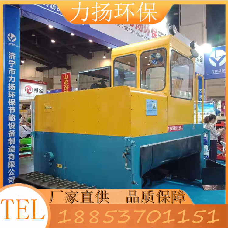 履带式翻堆机无需建槽,可将肥料直接在地面上堆置成长条形垛,由翻堆机定时对物料实施翻拌和破碎,在耗氧条件下进行有机物的分解。