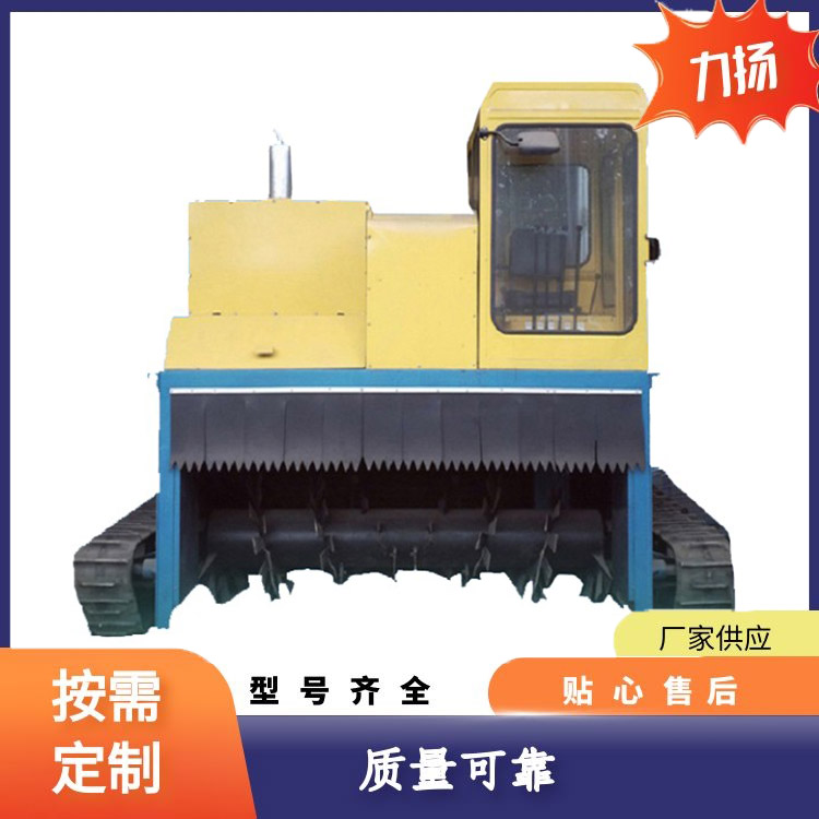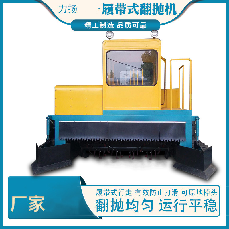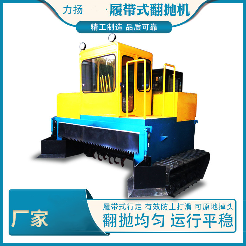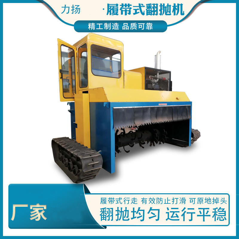 履带式翻抛机能取代高强度人工翻堆或铲车翻堆。机械化高效连续翻堆作业可显著改进三角形或梯形料堆的通风供氧,从而加快物料发酵腐熟和去除水分。该翻堆机一般应具有决裂、搅拌、翻抛和堆垛功能。其结构特点表现为:翻抛滚筒可液压升降,便于疗养地隙;滚筒螺旋叶片可拆卸,维修更换便捷;采用液压马达驱动履带,附着力好,接地比压小,地面经过进程能力强;采用履带行走占地少,转弯灵活,可以或许原地掉头,提高物料堆放场地利用率。