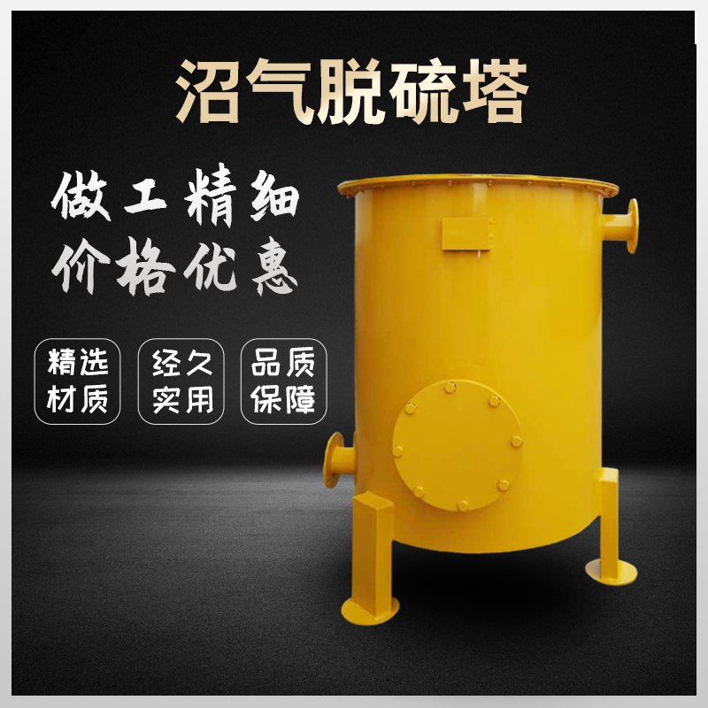 沼气脱硫器、脱硫塔、脱水罐湿法脱硫可以归纳分为物理吸收法,化学吸收法和氧化法三种。物理和化学方法存在再处理问题,氧化法是以碱性溶液为吸收剂,并加入载氧体为催化剂,吸收H2S,并将其氧化成单质硫,湿法氧化法是把脱硫剂溶解在水中,液体进入设备,与沼气混合,沼气中的(H2S)与液体产生氧化反应,生成单质硫吸收的液体有。