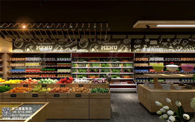 超市装修布置灯光布置十分重要,客户在明亮的购物环境中心情会更加舒适和放松,反之在昏暗的购物环境中会感觉比较压抑和紧张,这样肯定会影响消费者的购买欲。所以在超市灯光运用过程中,多以明亮和宽敞的环境为主。在色彩的运用可以结合商品来搭配,比如蔬果区可搭配冷色调让顾客感觉更加新鲜,熟食区可以配温暖的暖色调,让顾客更加的有食欲。