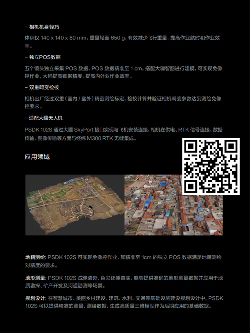 1.2亿总像素,精准至1厘米的独立POS数据,起配置应对地籍测量,房地一体,美丽乡村规划等地势平坦区域项目,助力用户实现贴近真实场景的三维模型。