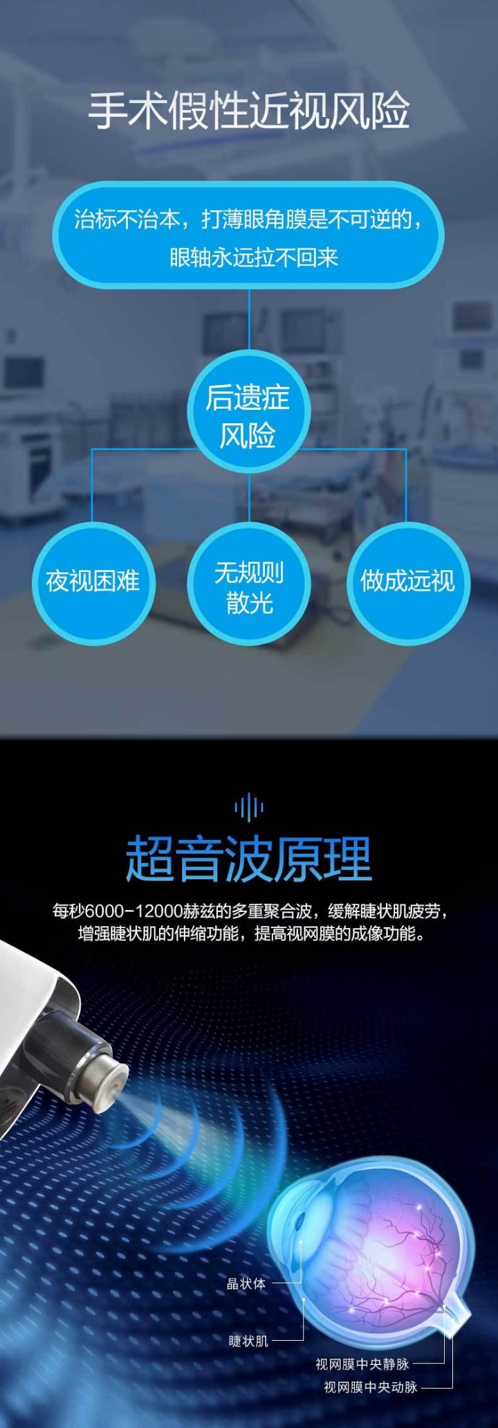 超音波护眼仪每秒可以释放6000-12000赫兹的多重超音波,超音波的机械性可以软化组织,增强细胞的渗透,提高机体代谢,促进循环,刺激神经系统和细胞功能。它的使用让我们对视觉疲劳的干预更加的便利。这种每秒约2万4千次震动的波频可以舒缓睫状肌紧张状态,从而促进血液循环,使细胞活性化,改善晶状体的焦点调节机能,从而达到改善视力的效果。