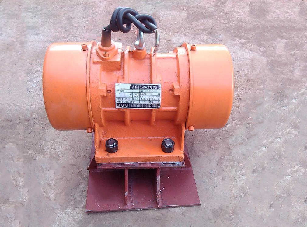 由特殊设计的电机外加偏心块组成,当电机旋转时,偏心块产生激振力通过振动器传递给料仓、料斗、溜槽的设备。
