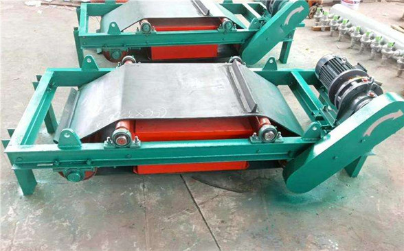 当电磁线圈通入直流电后,在磁极气隙中产生强磁场,当输送物料经过电磁铁下方时,混杂在物料中的铁磁性物质在磁场力的作用下,向电磁铁方向迅速移动,并被吸附,转动的皮带将吸附在表面的铁带离磁区,达到除铁的目的。
