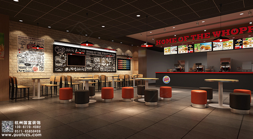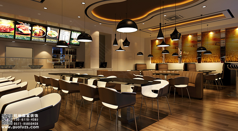 作为餐饮店的经营者火爆的生意是我们都想要,因为我们开一家餐厅就是为了让其为我们的盈利的;但是随着现在餐饮店的增多以及现在人们对于食物和就餐环境的日益挑剔,想成功经营好一家餐厅一是需要我们拥有美味可口的菜肴;二是要求我们餐饮店装修的美观舒适环境优雅,那么下面浙江国富装饰的小编带你了解对于快餐店又如何通过设计来提高顾客对我们的青睐度呢?