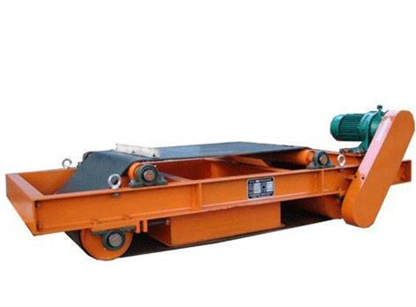 当电磁线圈通入直流电后,在磁极气隙中产生强磁场,当输送物料经过电磁铁下方时,混杂在物料中的铁磁性物质在磁场力的作用下,向电磁铁方向迅速移动,并被吸附,转动的皮带将吸附在表面的铁带离磁区,达到除铁的目的。