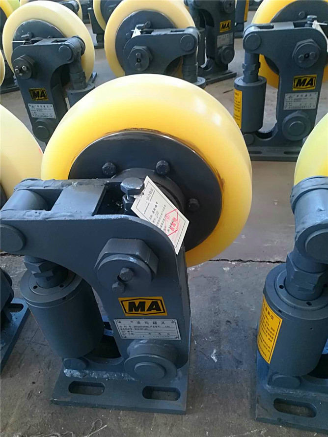3、缓冲器复位压力小,可有效地避免滚轮与罐道产生异常碰撞。通过杠杆传递到减震筒上,同时起到导向、缓冲与稳定作用。