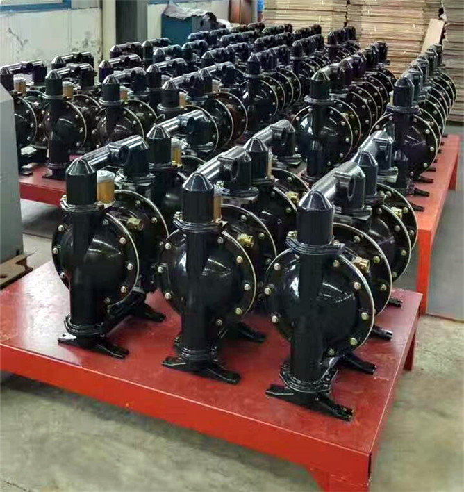 气动隔膜泵以气流推动阀芯往复换向,使压风交替进入左、右气腔,使之推动膜片凹凸往复运动而使工作腔内产生压差,达到吸水和排水的目的。体积小、重量轻、无需根基,可作为移动式泵,无需润滑,主阀对气源没有特殊要求,可自吸启动运行。