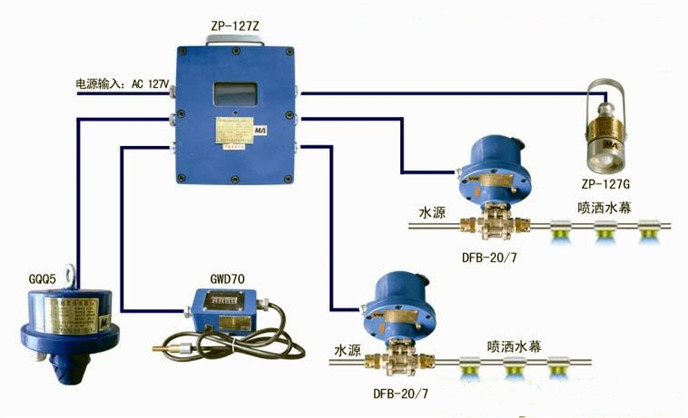 皮带机头机尾洒水降温防火设备ZP127洒水除尘保护皮带