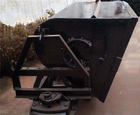 翻斗式矿车主要有车箱、车架、开式轮对、连接插销、连接链、翻转轨、缓冲装置、轴卡等组成。