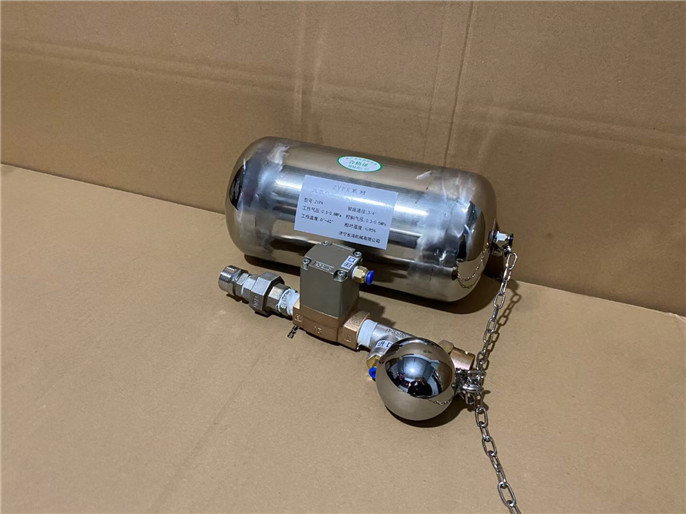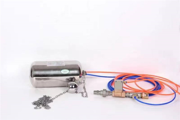 通过调节机构用于调节控制水位差,钢球滚动从而触动行程压板,利用行程压板自动接通和断开行程阀本体的阀门,改变行程阀本体上的气体管道的连通与封闭的状态;该装置由零部件组装而成,制造过程简单,安装方便,可在数年使用过程中免维护,机械寿命长的优点。
