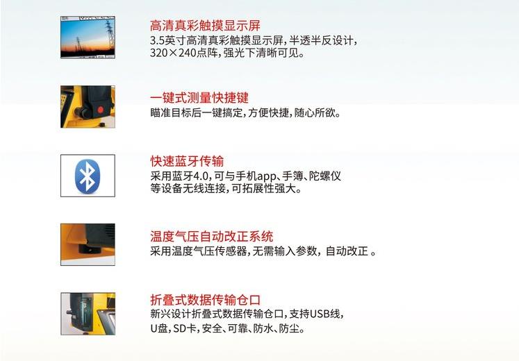 采用蓝牙 4.0,可与手机 APP、手簿、陀螺仪等设备无线连接,可拓展性强大。