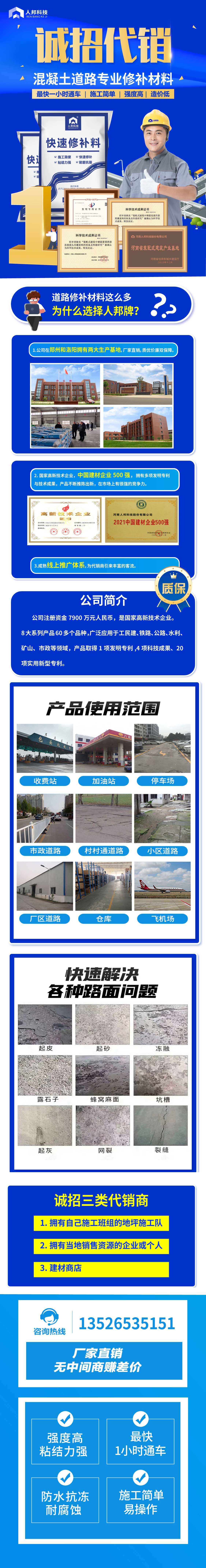 一、道路修补材料这么多,为什么选择人邦牌?