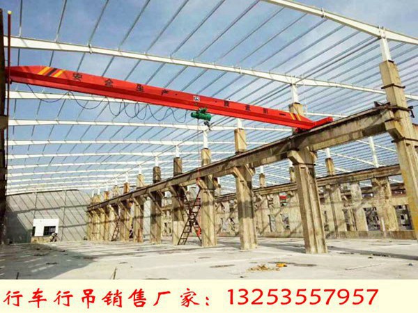 吉林白山行车行吊生产厂家定期检查有周检、月检和半年检。那么具体的检查内容都有什么呢?先检查接触器和控制器触头的腐蚀情况,其次检查制动器闸带的磨损程度,接下来 查看机器上各个地方连接处的螺钉的松紧情况和钢丝绳的磨损情况,zui后需要检查的是钢结构关键部位的链接情况,看看是不是有变形或者有裂纹的现象。