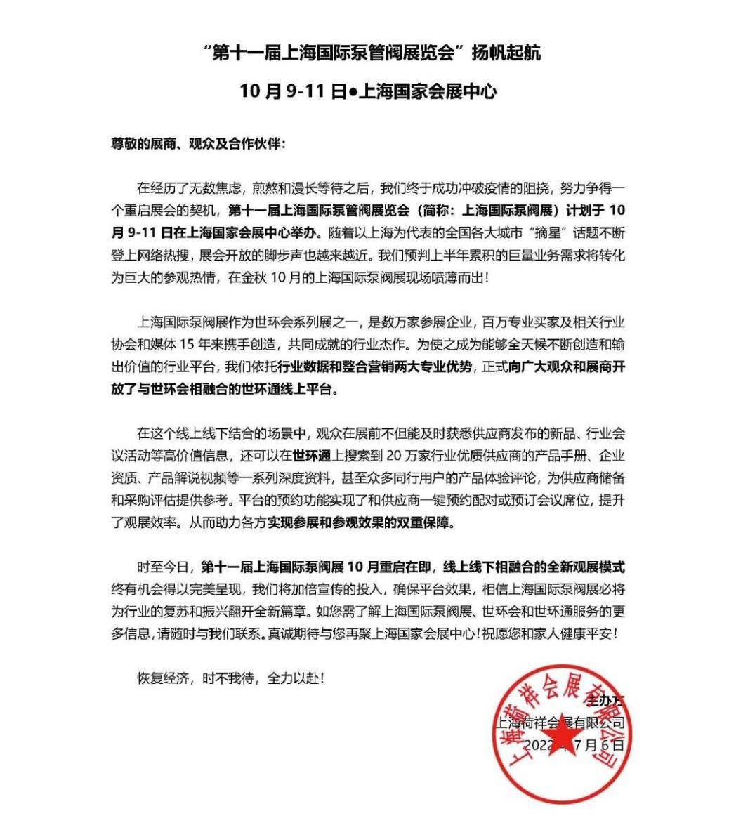 “疫”别多日,全力以“复”丨2022上海国际泵阀展定档10月