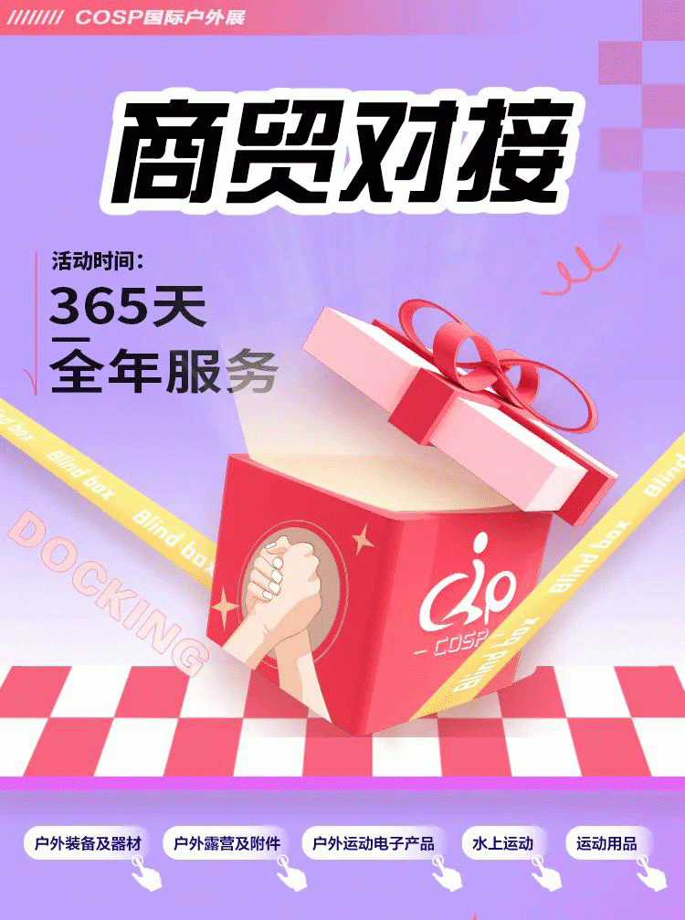 由城市走向山野,高歌黎明,喜迎朝阳,牧业朝歌,户外活动的跨界盛会,2023户外展会主题涵盖旅居房车、登山攀岩、露营野炊、水上运动、城市时尚运动等。打破传统会展形式,在新市场环境与需求下,透过打造兼具待审核性沉浸式户外休闲运动展示空间为品牌商提供一个接触经销代理商、批发零售商、专卖店、直播电商、全球跨境电商等;传统与新兴渠道买家以及广大户外爱好者的平台,帮助品牌商快速增长的中国与全球户外市场。