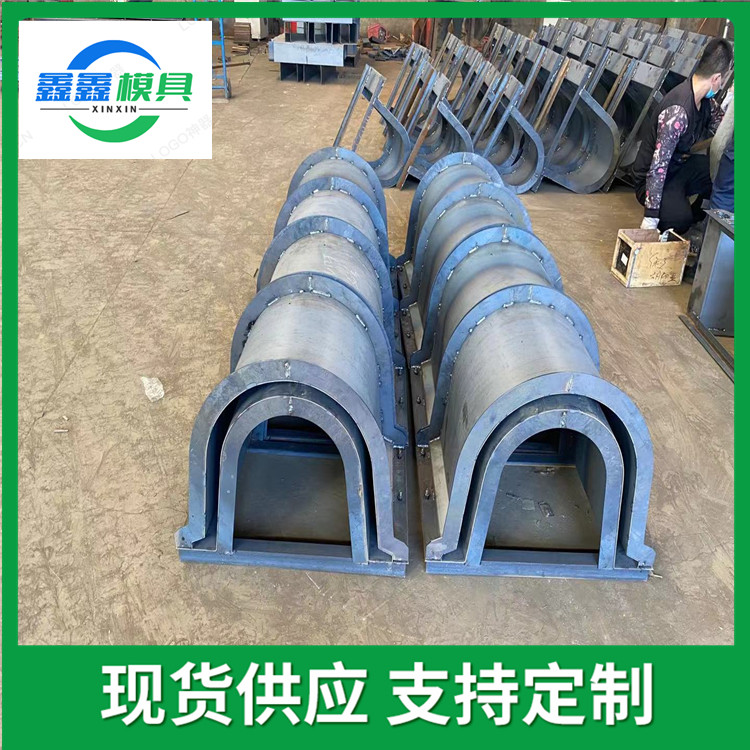 保定鑫鑫建材模具厂定制流水槽钢模具。U型渠模具标准化制作方案主要针对的是所需要的模具型号,因为U型渠模具所涉及到的型号非常多,而且常用类型主要分为30、40、50、60等型号,长度设置为50厘米,两侧带有小沿儿形状。U型渠模具标准化制作方案是根据我厂所积累的该模具生产经验进行总结陈述的,从U型渠预制块的制作上来说,都是使用的小型震动棒插入到模具内部进行混凝土振捣,这样就节省了搬运在振动台的时间。