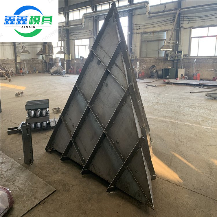 四面体钢模具的结构主要是根据正方体、三角体或者框格形式进行生产,防浪石预制块体积大,人工无法搬运预制块,因为使用的4毫米以上钢板焊接,拆卸方便。一般情况下防浪块预制块都是专门在预制厂生产的,而根据每种预制块的样式,都有专门定制的四面体铁模具 四面体钢模具进行预制生产。