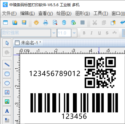 f.点击“完成”之后,在软件中就会出现一个60mm*40mm的白色画布,然后就可以根据需要在画布上绘制文本、条形码、二维码、图片等。