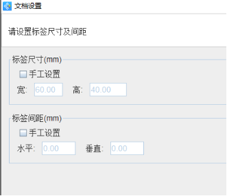 e.标签间距保持0不变,标签尺寸(宽度:60mm 高度:40mm)软件会根据上面的参数设置自动计算出来。