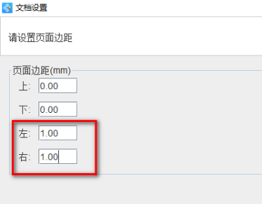 d.上下页面边距保持0不变,左右页面边距(左右两边空白边距的距离)都设置为1mm。