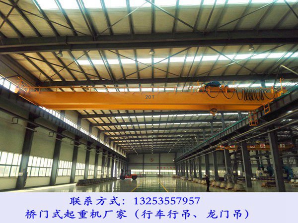 湖北随州行车行吊生产厂家制造的桁车行吊可适用于车站、港口、工矿企业等部门的车间、在固定胯间内对物料进行起重、运输及装卸工作。并且其配置吊钩可用于机械加工、装配车间、金属结构车间、冶金与铸造车间、以及各类仓库的吊运工作。而其配置抓钩则适用于冶金、水泥、化工等工业部门,或者露天的固定跨度、从事散粒物料的搬运工作。