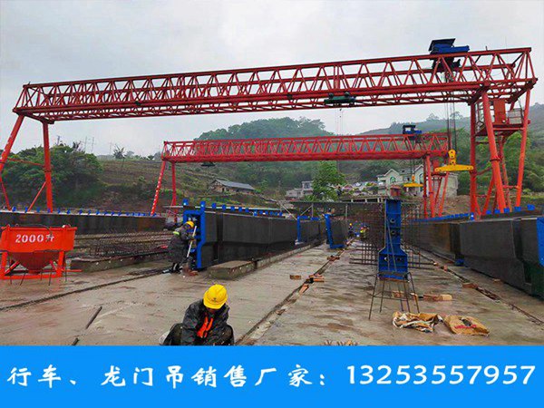 黑龙江黑河龙门吊销售厂家生产的提梁机龙门吊外形结构有包厢式提梁机、花架式两种。提梁机龙门吊适用范围:制梁场、铁路架桥、公路架桥、地铁项目、高架桥施工等各种路桥项目;常用规格型号有:60吨、80吨、90吨、100吨、120吨等,常用跨度为24m,常用高度9米。