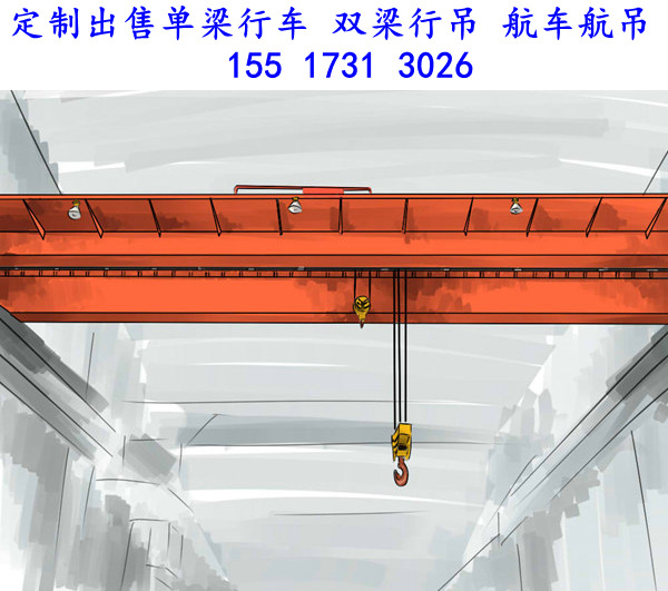 河北张家口行车行吊生产厂家155、1731、3026主营产品有:单梁起重机、双梁起重机、门式起重机、欧式起重机、行车行吊、航车航吊、龙门吊、单梁行车、双梁行吊、欧式行车。我公司是专注于搬运设备、起重设备的销售及售后维护服务的公司,不断优化产品结构性能,专研产品在各行业内客户的不同使用需求,致力于提供高质量的产品,完善的服务和快捷的供货,我们的产品受国内外市场坚定的肯定。