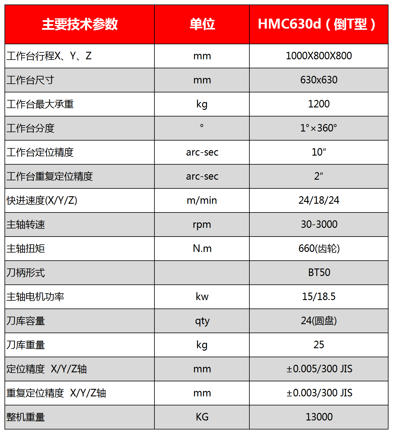 HMC630D双/单工位卧式加工中心技术参数: