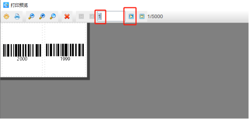 3.点击软件顶部的“打印”按钮,在打开的打印设置窗口中,设置好数据量,开始页码和结束页面,点击下面的“预览”按钮,翻页查看批量生成的倒序流水号条码,预览无误就可以连接打印机打印或者是输出PDF文档、TIF文档以及图片等。