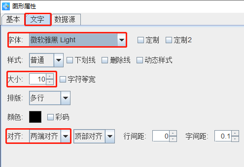 在“文字”选项卡中可以根据自己的需要设置文本内容样式,包括字体、字号、字间距、对齐方式等。