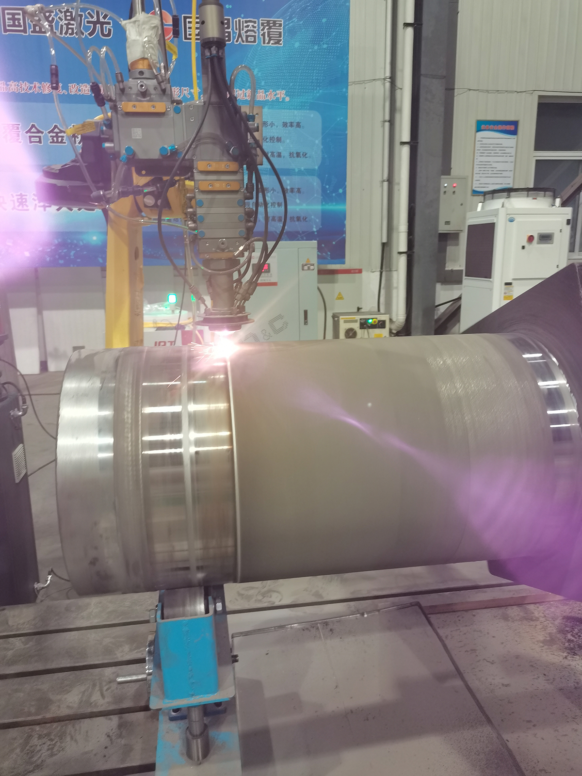 单工位熔覆淬火设备机床采用全HT铸造床身,结构稳定,减震性高,PLC控制具有“友好”的人机对话界面,四轴机构(X、Y、Z、旋转轴)可实现联动;单工位设计、结构简单、操作方便;全水冷熔覆/淬火头可实现24小时连续作业;该设备最大回转直径Ø600mm,装夹工件最大长度3000mm,最大承载能力3T;可实现轴类、盘类零件的外圆熔覆/淬火,也可对内孔进行熔覆/淬火。