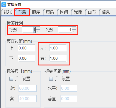 2. 打开中琅标签编辑软件,根据打印机中实际纸张设置纸张尺寸和布局,纸张我们这里设置为总宽度为62mm,高度为40mm的单排标签纸。