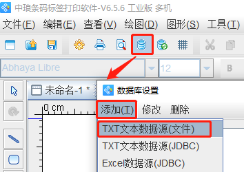 3. 将CSV文件导入到标签编辑软件中 点击软件顶部的“数据库设置”按钮,在数据库设置窗口中点击“添加”-“TXT文本数据源(文件)”,在打开的窗口中点击文件路径后面的“浏览”按钮,找到电脑上保存的CSV文件,分隔符号选择“自定义”,后面的输入框中输入“-”,点击“测试连接”-“添加”按钮。