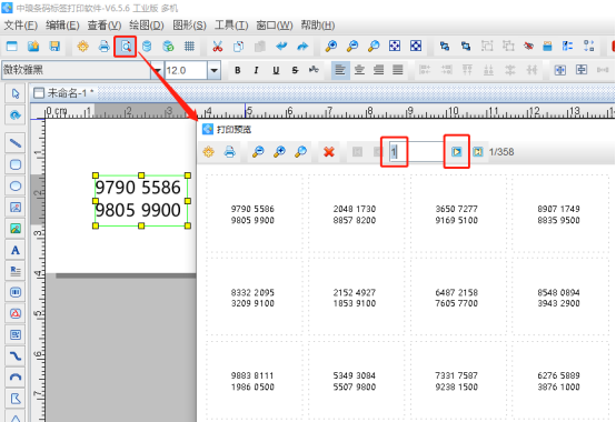 点击软件顶部的“打印预览”按钮,翻页查看批量制作的分段防伪码,无误就可以连接打印机打印或者是输出PDF文档、TIF文档、图片了。