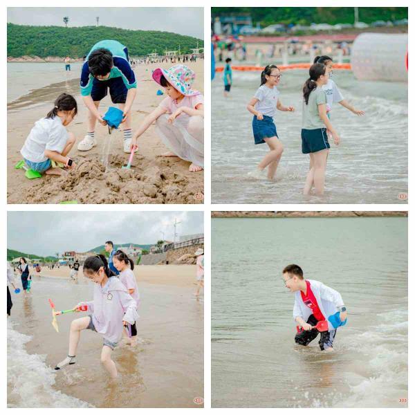 第二天早上,我们一起前往松兰山海水浴场,开启新一天的快乐。大家在海滩边尽情玩耍,堆出自己喜欢的城堡。