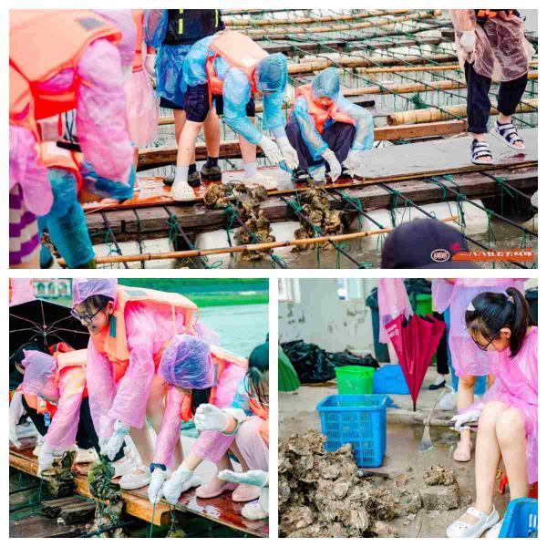捕捞上岸的生蚝在经过清洗之后,由孩子们亲自撬开,时间获得新鲜的生蚝肉。只有亲自体验过,才知道平日里吃到的各种美味都是来之不易的。这也让孩子们体会到了何为"粒粒皆辛苦"。