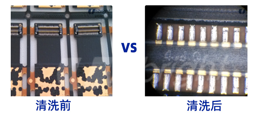 2、能够有效清除元器件底部细小间隙中的残留物,清洗之后焊点保持光亮。
